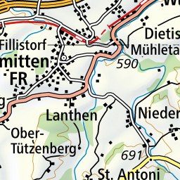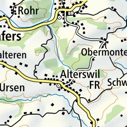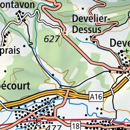 Dès le départ de l’arrêt de bus, l’itinéraire monte tranquillement en direction de la « Place centrale », d'abord sur une route puis à travers la forêt et les pâturages boisés.